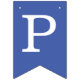 Flaggorna har omväxlande nyanser av blå, från mörkare till ljusare blå. Bokstäverna är vita, Meddelandet är "Glad födelsedag" följt av ett namn på 3 bokstäver som du bör ändra bokstav för bokstav (standard är Tom).