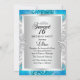 Blå & Silver Sweet 16 Födelsedagsinbjudan. Elegant diamant & glitterdesign. Observera: Alla platta bilder, De har inte riktiga juveler eller glitter!