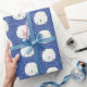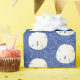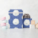 Den här pappra julomslutningen vid kusten har en mönster av vita sanddollar på en marin blå faux glitter-bakgrund.