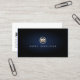 Det här enkla men mycket elegant affärskortet har en enkel guld-ikon med fotografkameror i en guld-cirkel. Ditt namn visas i matchande färg och är enkelt att läsa teckensnitt under den här ikonen. Bakgrunden är jet svart med en subtil blå glöd i mitten av kortet, bakom namn och ikonen, ge kortet ett slående utseende. Perfekt för fotografi, film, video, konstnärliga färdigheter, filmkunskaper, videokunskaper, bildredigering och fotoredigeringsteman.