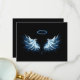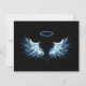 Blå glowing Angel Vingar på svart bakgrund Tack Kort