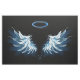 Blå glowing Angel Vingar på svart bakgrund Tyg