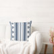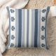 Ge dina inomhus- eller utomhusutrymmen en uppfriskning med denna sommar-kudde som har feta blå och grå ränder med roliga detaljer i madrass-prickmönster och ett enkelt blommönster. Denna mångsidiga design passar sömlöst in i olika stilar för heminredning. Perfekt för användning inomhus i vardagsrum eller sovrum, eller utomhus på veranda eller uteplats. Gör en fin husuppvärmningspresent till nya hemägare.