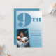 Blå Gradient 9-års födelsedagsinbjudningar Foto pojke