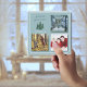 De mjuka färgerna på den blå granens juldesign har sina ikoniska träd som accentuerar ditt galleri av foton. Kanterna är strödda med snö, medan baksidan har en urblekt vy av fler träd. Detta är det perfekta kortet för att skicka dina familjebilder i en magisk miljö. Välsignelser!