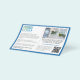 Informativ marknadsföring-flygare för ditt lilla företag med mycket ställe för anpassningsbarna på ena sidan, tillsammans med din logotyp, QR-kod och ett foto. På den andra sidan, ett större foto, en webbplats adress och en tagglinje eller kortare text. En blå gräns som ramar in texten fokuserade på personligen för att höja tonvikten med logotyp, webbplats, foton och QR-kod. Ändra text och foton på den här praktiska flygbladsmallen så att dina kunder och kunder får veta om ditt företag och/eller din aktuella försäljning, erbjudanden eller kampanj.