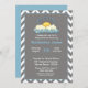 Blått och Grått har en Cute sunshine som söker ut från molnen. Denna schevron mönster är perfekt för pojke. Det folkliga talesättet, du är min solsken, är ett underbart babyduschtema. Anpassa inbjudan med information om babyduschen.