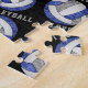 Den här volleyball-pusselpusslet i mönster för flickor har en större blått, grått och vit, stiliserad volleyball, på vilken hennes namn och jersey-nummer kan vara personlig, som överför mönster av mindre blå, grått och vita volleybollar på svart bakgrund och "I kärlek volleyball" varsity-brev-stil i grått som sträcker sig mellan vinden av volleybollar - av katz_d_zynes