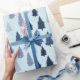 Blå Grått Gräs Julgranar och Snöflingor Presentpapper