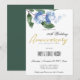 BLÅ GRÖN BLÄCK TVÄTT AKVARELL BLOMSTER JUBILEUM INBJUDNINGAR