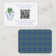 Detta enkla och eleganta QR-kod kort (för registrering eller svar eller något annat relaterat till evenemanget) har min ursprungliga blå och vita ginger jar med grön slinga illustration. På baksidan finns en festlig blå och grön tartan-ruta.