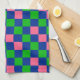Blå Grön Rosa Rutig Mönsterdesign Kökshandduk