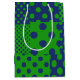 Prickar i marinblått och limegrönt, mönstret växlar mellan små, medelstora och stora prickar för att skapa en känsla av textur och djup. Denna lekfulla men ändå sofistikerade geometriska estetik är perfekt för dem som älskar maximalistisk inredning, retro-moderna fusioner och livfulla färgkombinationer. Idealiskt för kläder, tekniska tillbehör och påkostade heminredningstextilier.