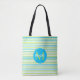 Blå Grönt Enkel Elegant Rand Namn Monogram Tygkasse