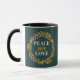Blå Grönt, fred, Joy, Kärlek Guld, julkrans Mugg