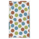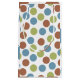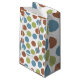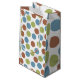 Den här presentsäcken har en geometrisk utformning av blå, grönt och bruna punkter.