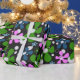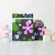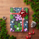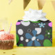 Blå, grönt och rosa funky blommor med vit polka dots på svart bakomliggande papper.
