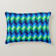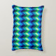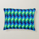 En accentkudde med en färgstark, ombre mönster-design av chevoner i kalkgrön, royal-turkos, havsblå och himlar blå.