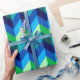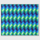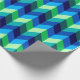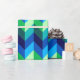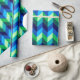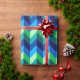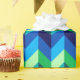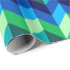 En papper inslagningsrulle med färgstark mönster-formgivning av chevroner i kalkgrönt, royal-turkos, havsblått och himlar-blått.
