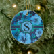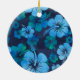 Blå Grönt Tropical Hibiscus Blommigt Monogram Julgransprydnad Keramik