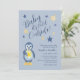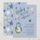Blå Gul Stjärna Pingvin Baby Shower Inbjudan