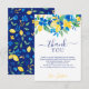 Blå gula citroner blommig akvarell bröllopsdusch tack kort