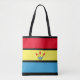 Moderna eleganta stilrena tre fjädrar och blåa, gula och röda ränder på svart totebag.