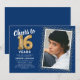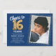 Blå Guld 16-års födelsedagsfoto Inbjudningar