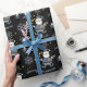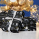Blå Guld Denim Black jultomten Mönster Presentpapper