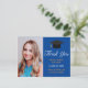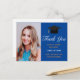 En klassisk anpassad fotografi examen tackkort i vacker kunglig blå och guld för en gymnasieskola, högskola eller universitet från årskullen 2025. Anpassa med din skola namn och examen klass under den vackra kalligrafin för ett elegant personligt examensfoto tackkort med din seniors porträtt.