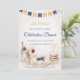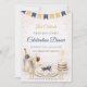 Blå och guld firandets tema, skript typografi, mjuk neutral bakgrund med bannerflaggor, champagnegalleri, tortedalj och dekorationselement för dukning. Designad för att vara värd för formella middagar, milstolpssammankomster eller kvällsfiranden med en förfinad och polerad evenemangsuppsättning.