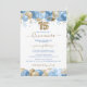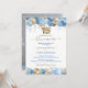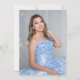 Denna eleganta Quinceañera-inbjudan har glittrande ballonger i olika nyanser av blått och guld med guld ballong 15. Fallande strömmar och konfetti i blått och guld fullbordar feststämningen. Baksidan visar ditt favoritfoto. Lätt att anpassa genom att klicka på "Personifiera".