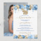 Blå Guld Glitter Foto Quinceañera Ballong Inbjudningar