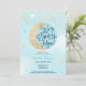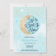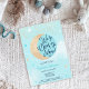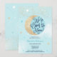Söt blått Vi är över måne-manuset babydusch party med söta illustrationer med en guld glitter måne, blå redigerbar stjärna, zodiaktecken, moln. Med redigerbar pastellblått och marinblått.