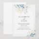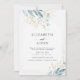 Modern vattenfärg, inbjudan till blommigt i färg blå guld. Perfekt för bröllop och enkel att redigera. Fyll i data, du kan välja teckensnitt, placering osv. individuellt genom att "ytterligare anpassa".