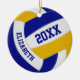 Det här volleybolllaget färger är ett prydnadsföremål för flickor eller pojkar och har en realistisk tittar volleyboll med blå, guld och vita paneler - anpassat med idrottsmannens namn och år på ornamentens framsida och baksida - av katz_d_zynes