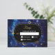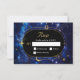 Bjud in dina gäster att svara under stjärnorna med detta mystiska himmelska astronomi-bröllop RSVP-kort i blå och guld. Mot en romantisk blå natthimmel har denna eleganta design en strålande gyllene måne med detaljer av stjärnbilder och ett mjukt stjärnskimrande ljus. Den mystiska stämningen förstärks av en magisk galax-vattenfärg bakgrund med drömlik, rymdinspirerad textur som fångar universums under. Perfekt för par som älskar modern, rymdinspirerad astronomi-stil, förenar detta RSVP-kort raffinerad kosmisk skönhet med praktisk elegans och fullbordar er himmelska bröllopssvit på en oförglömlig sätt.