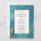 En elegant jubileums inbjudan med rik blågrön marmor med guldådror och en guld ram.