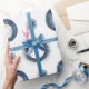 Blå guld marmorerad vattenfärg mönster presentpapper
