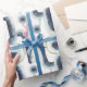 Blå guld marmorerad vattenfärg mönster presentpapper