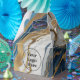 Favoritlåda med en vacker blå, guld och vit marmordesign som ger ge ett lyxigt och modernt utseende.