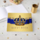 Prinsens baby shower gästbok med kunglig blå och guldfärgad juvelkrona och kunglig blå och guldfärgad banner på en guldbakgrund. Denna kungliga blå och guldfärgade gästbok passar bra för en prins baby shower gästbok, prinsens födelsedagsfest gästbok, eller någon annan prins eller kung tema fest eller evenemang. Denna prins gästbok är lätt att anpassa för ditt evenemang genom att helt enkelt lägga till den text du väljer i den teckensnittsstil du föredrar.