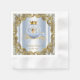 Prins bebisfest servetter med bedårande liten prins i en snygg blå och gul vagn på en elegant babyblå och gul virvlande bakgrund. Du kan lägga till text för att anpassa dessa underbara prins bebisfest servetter.