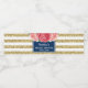 Anpassningsbar text möhippa vattenflaska etikett i blått och vitt med guld rand och rosa vattenfärgblommor. Observera att guld endast har fotoeffekt.