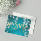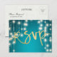 Bröllop RSVP Svars Kortmall - Elegant Faux Guld Folie RSVP Bokstäver Skript och Vintage Strängljus med Turkos Blå Glitter Gnistra Bakgrund.