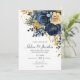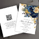 Skapa din drömbrylloppssvit med denna fantastiska blommiga, marinblå, guld- och trädgårdseleganta bröllopsinbjudan. Med en sofistikerad färgpalett i marinblått, guld och terrakotta balanserar denna inbjudan perfekt elegans med en touch av rustik charm. Den känsliga kalligrafiska stilen lägger till en personlig, förfinad touch, vilket gör den idealisk för par som söker en tidlös design. Med den medföljande QR-koden kan dina gäster enkelt komma åt din bröllopswebbplats och svara, vilket effektiviserar processen för dig och dina nära och kära. Och med möjligheten att skicka digitalt kan du enkelt dela denna vackra inbjudan med dina gäster, även om du har en snäv tidsram. Denna inbjudan passar vackert med en rad bröllopsteman, från moderna