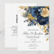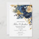 Blå Guld Trädgård Elegant Bröllop Inbjudningar