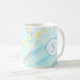 Den blå marmor och den guld som trycks eller vatten mönster med anpassningsbar monogram mugg kommer att ge snyggt till din dagliga rutin. Denna utformning påminner om vatten eller en vacker marmor som är vänd mot guld och är perfekt för sommaren. Anpassa monogrammet genom att redigera det i listan för att anpassa det.