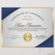 Yrkesbevis för prestation utmärkelser design egenskaper blå, guld och grå färger med detaljerade linjer och en guld kant. Inkluderar guldmedalj utmärkelse och stjärnor.