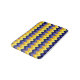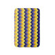 Ett litet badmatt med en söt, berbare mönster-design av schevroner i blått, gult och guld.